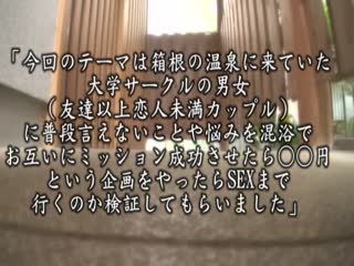 簡介: 對這些大學生們下色色戰帖、如果男女能混浴成功就有獎金可拿!在錢和性慾的誘惑下只好乖乖答應!在看光彼此肉體的情況下整個發情大勃起!讓你看到多組大學生男女興奮到幹起砲的實況!